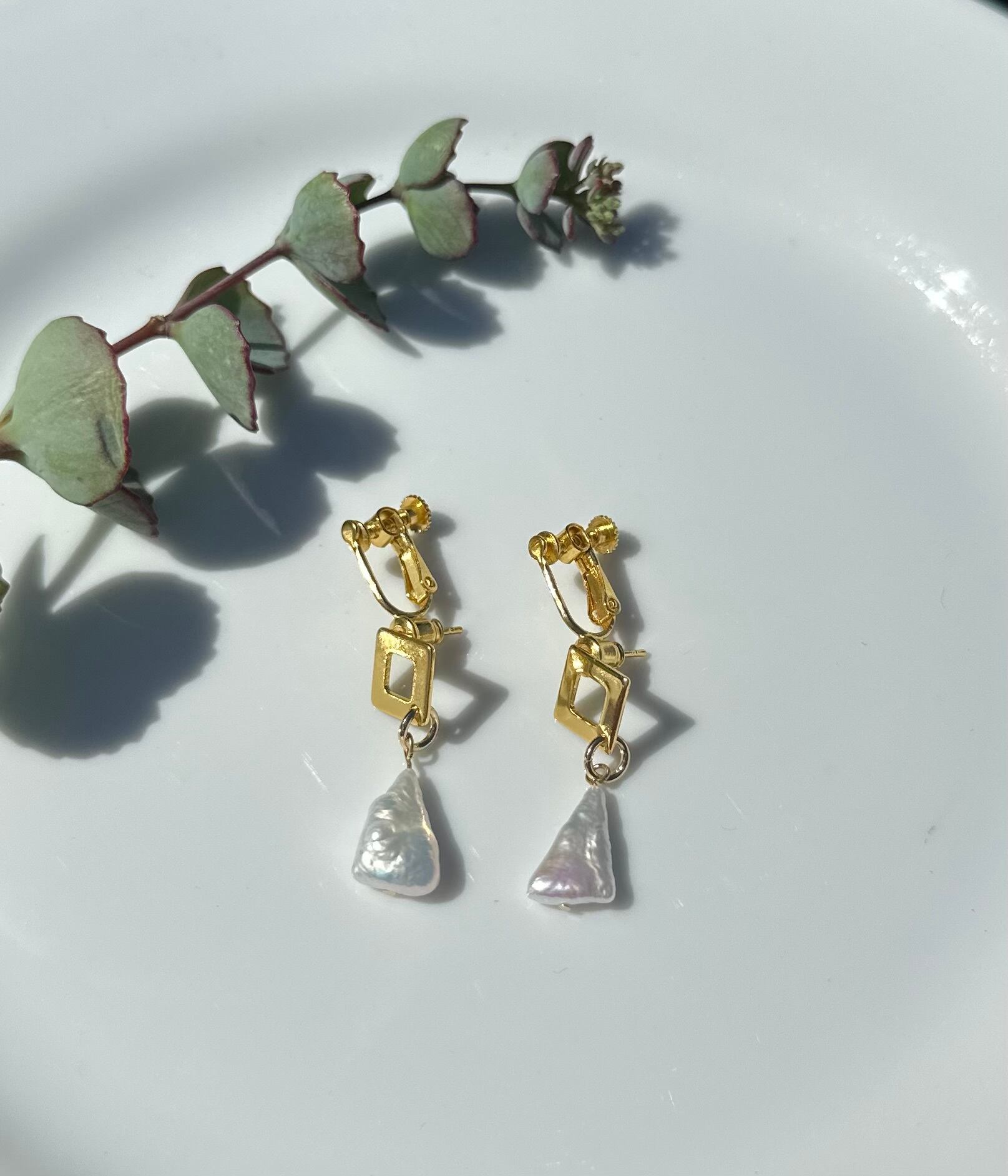 三角イヤリング|Celemilly(セレミリー)|淡水パール|【C-8】