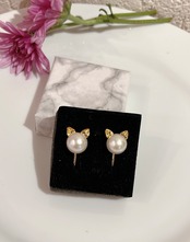 猫耳モチーフが可愛らしい、淡水パールのイヤリングです。