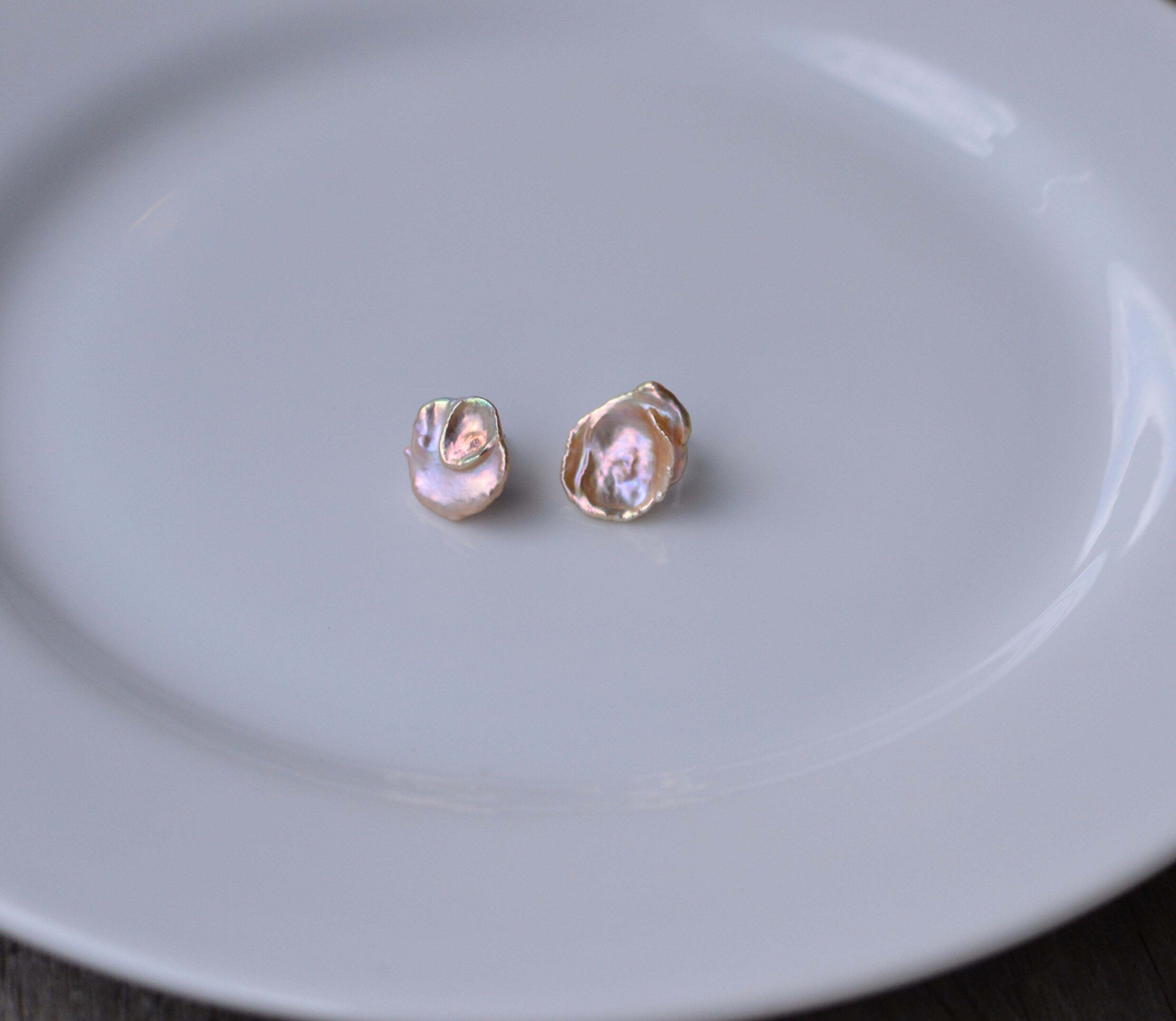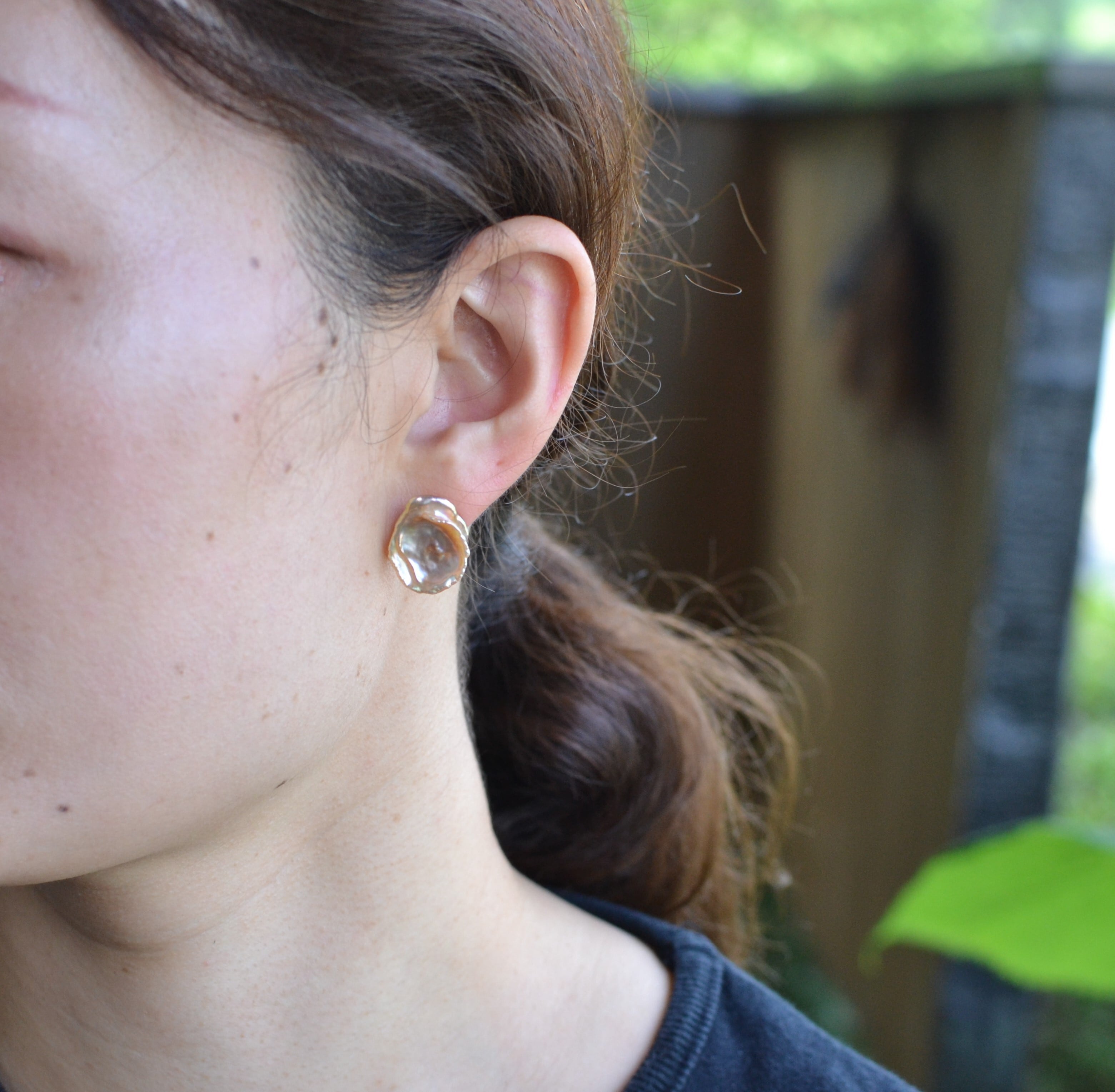 自然な花のような形の、Celemilly(セレミリー)の淡水パールピアスです。